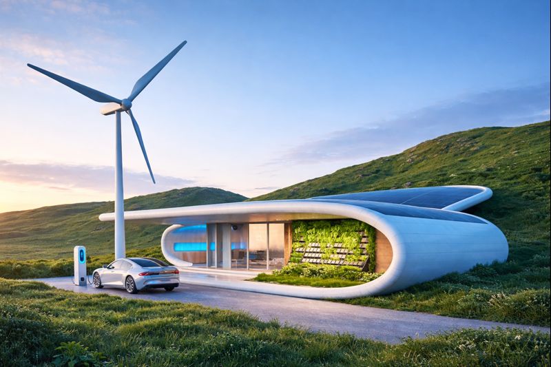 Moderne Technik wie Photovoltaik mit Speicher und Kleinwindkraftwerk